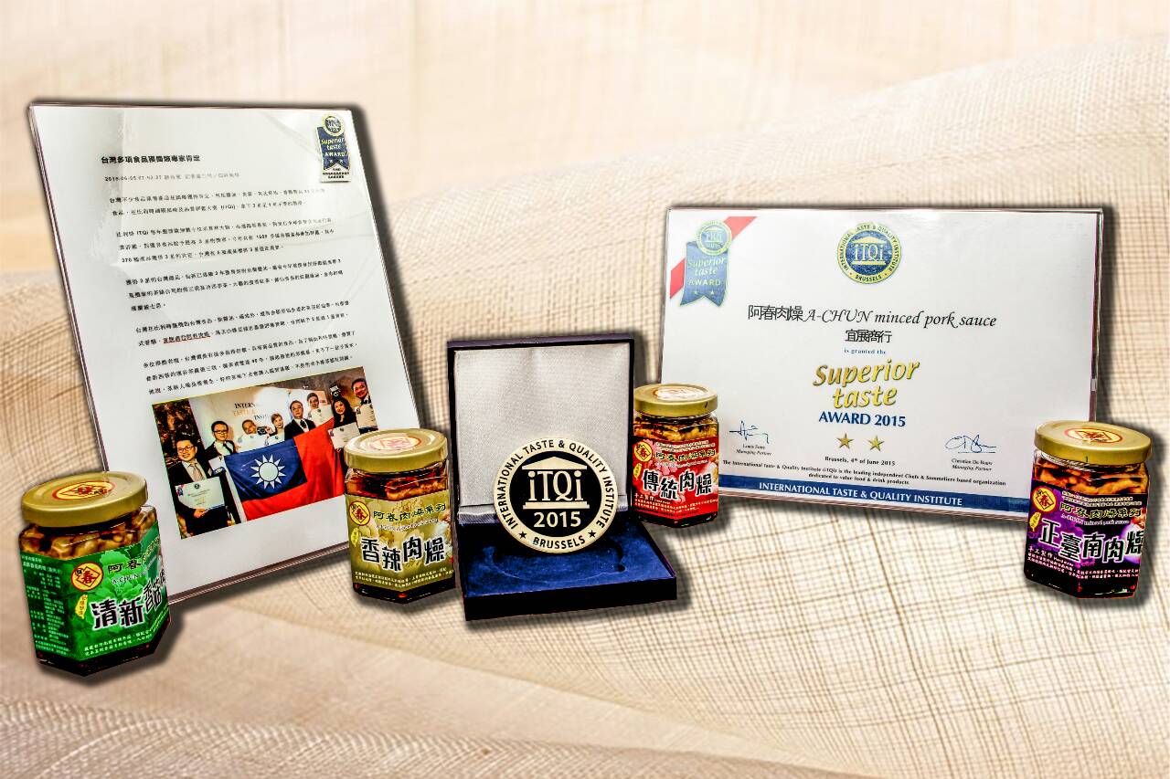 本店肉燥商品榮獲2015年比利時國際風味暨米其林三星主廚評鑑為風味絕佳獎章之二星榮耀(滿分三星) 在地臺灣良心美食,